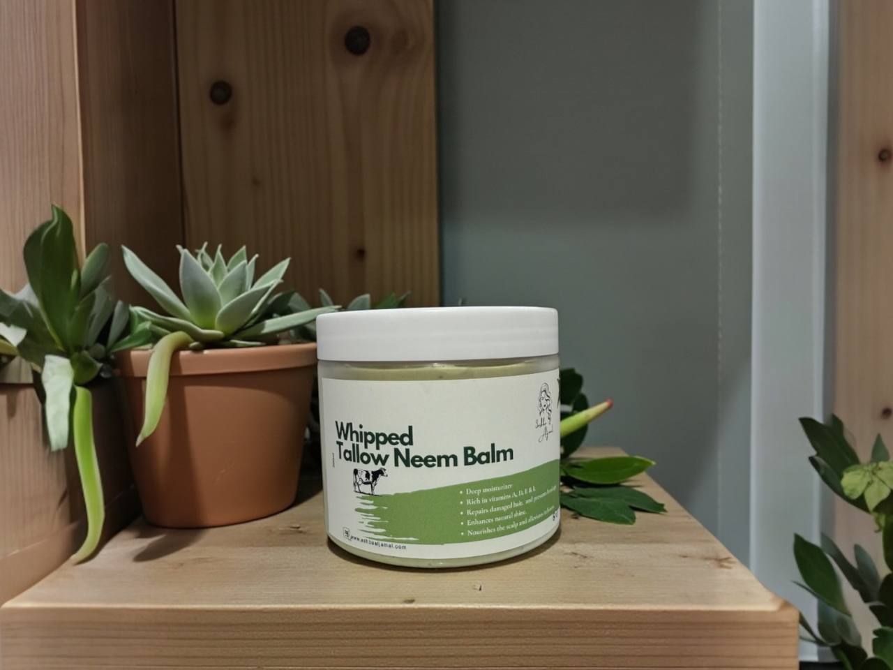 A rich, nutrient-dense hair balm crafted from purified beef tallow, neem oil, botanical herbs, and essential vitamins. This concentrated blend deeply nourishes the scalp, restores extreme dryness, and strengthens weak, brittle hair.